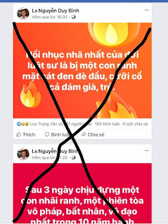 Cay cú vì kế hoạch quậy phá, câu giờ phiên tòa xét xử vợ chồng luật sư Trần Vũ Hải trốn thuế bị phá sản, và cay cú vì bị sốc nách tống ra khỏi phiên tòa, Luật sư Nguyễn Duy Bình đã lên Facebook thể hiện sự hằn học.