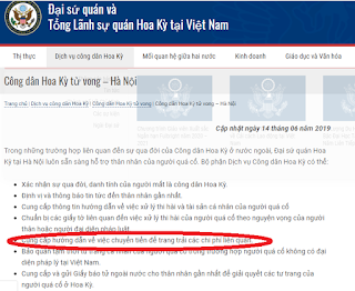 Đây là trang Đại sứ quán và Tổng Lãnh sự quán Hoa Kỳ tại Việt Nam, trong đó có bài: “Công dân Hoa Kỳ tử vong – Hà Nội” viết hôm 14/6/2019. Mời anh bấm vào đường link phía trên để đọc hoặc có thể bấm vào đây để xem.