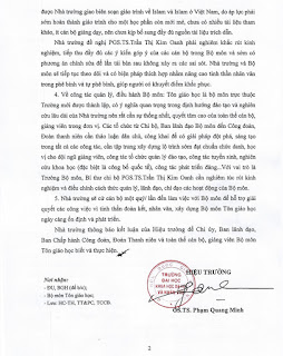Tuy nhiên, nhà trường chưa trả lời được một cách rõ ràng là bà Trần Thị Kim Oanh sẽ sửa sai như thế nào? Cuốn sách này đã được thu hồi chưa? Cuốn sách này có được coi là một trong những công trình để tính điểm phong hàm Phó Giáo sư không? Nếu có phải xử lý thế nào?
