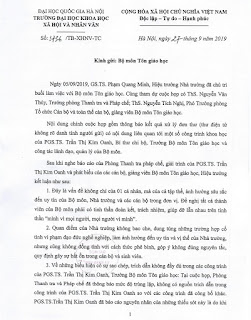 Thông báo của Trường Đại học Khoa học xã hội và Nhân văn (Đại học Quốc gia Hà Nội) xử lý vi phạm đối với bà Trần Thị Kim Oanh.
