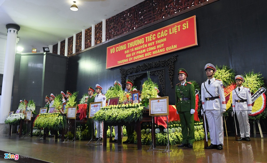 Bộ trưởng Tô Lâm dẫn đầu đoàn lãnh đạo của Bộ Công an vào viếng. Trong sổ tang, đại tướng Tô Lâm viết: “Sự hy sinh của ba chiến sĩ là sự tổn thất, mất mát lớn đối với lực lượng công an nhân dân và gia đình, người thân”.