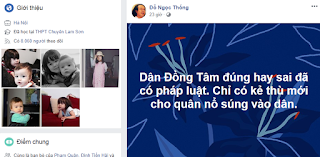 “Dân Đồng Tâm đúng hay sai đã có pháp luật. Chỉ có kẻ thù mới cho quân nổ súng vào dân”.