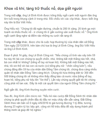 Đảng Việt Tân có tên trong danh sách các tổ chức khủng bố mà Bộ Công an quy định. Còn nhóm bạo động tự xưng là “tổ Đồng Thuận thì đã công khai tuyên bố sở hữu vũ khí và đe dọa giết người: