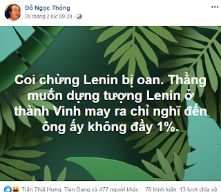 Ảnh chụp màn hình: Tay PGS TS Đỗ Ngọc Thống tỏ thái độ phản ứng và ám chỉ tiêu cực vê xây dựng tượng đài Lê Nin.