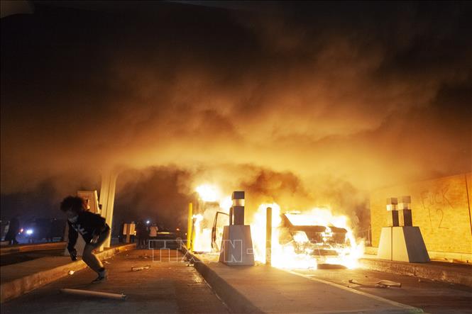 Người biểu tình quá khích phóng hỏa tại Minneapolis, Minnesota, Mỹ ngày 29/5/2020. Ảnh: THX/TTXVN