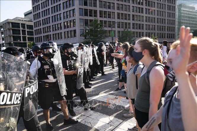 Người biểu tình tuần hành tại Washington D.C., Mỹ ngày 30/5/2020, bày tỏ phẫn nộ trước cái chết của người da màu George Floyd. Ảnh: THX/TTXVN
