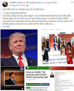 Trong stt trước đó có tựa “TIN THẾ GIỚI VÀ TRONG NƯỚC TUẦN QUA”, Lã Minh Luận cũng đã thể hiện thái độ hằn học với chế độ, với đảng. Lẽ dĩ nhiên, như thường lệ mụ già này tiếp tục núp bóng chữ “dân” để chửi bới chế độ.