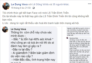 Vì bị bóc mẽ, Lê Dũng Vova cay cú, lên mạng viết: “Tôi chính thức gỡ kết bạn Face với nick LS Trần Đình Triển. Dù tài khoản này là thật hay giả của LS Trần Đình Triển thì tôi cũng không kết bạn nữa. Lí do: dùng từ ngữ rất thiếu văn hoá khi tranh luận trên mạng xã hội“.