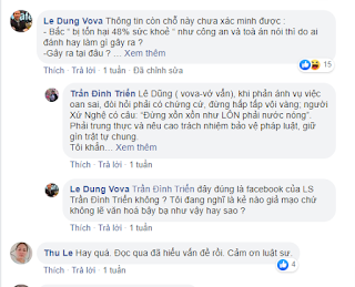 “Trần Đình Triển đây đúng là facebook của LS Trần Đình Triển không ? Tôi đang nghĩ là kẻ nào giả mạo chứ không lẽ văn hoá bậy bạ như vậy hay sao ?”