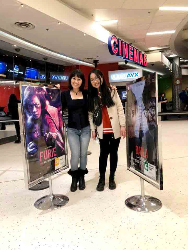 Nhớ VN, Hải Yến (trái) xem ngay phim Hai Phượng chiếu ở Canada – Ảnh H.H.