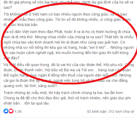 Trích 2: “Tôi không biết ở Việt nam có bao nhiêu người theo công giáo, và có bao nhiêu ác mẫu theo công giáo. Tôi tin số đó không nhiều, vì công giáo được tổ chức khá bài bản.
