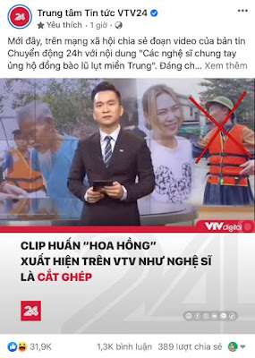 Sau khi xem kỹ video này mình thấy khá nhiều điểm bất thường, giọng MC nữ choe choé như hàng cá, hàng tôm ngoài chợ. Hỏi một người bạn tại Nhà đài VTV, thì đoạn video Huấn Hoa Hồng làm từ thiện tại miền Trung có logo của Nhà đài VTV24 là giả.
