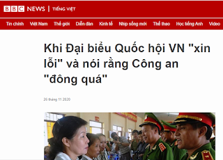 Chỉ một ngày sau khi anh Sùng Thìn Cò phát biểu trước Quốc hội về quân số của lực lượng công an, BBC đã ngay lập tức đăng tải bài “Khi Đại biểu Quốc hội VN xin lỗi và nói rằng Công an đông quá“. Bằng thủ đoạn dẫn lời bình luận và phát biểu của anh Cò, thông điệp của BBC là kêu gọi phi chính trị lực lượng vũ trang, đòi thay đổi thể chế chính trị và đa nguyên, đa đảng.