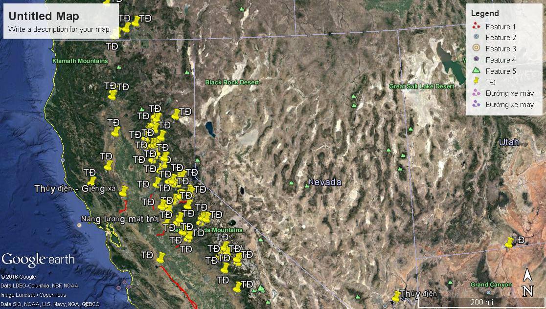 3. Khu vực Califonia cơ bản giống vùng Miền Trung nước ta về mặt địa hình cũng Đồng bằng chạy men theo dãy núi… tức là niềm năng thủy điện rất lớn đặc biệt là các thủy điện cột nước cao.. và các thài nhìn hình xem .. họ cũng khai thác triệt để luôn, dày đặc luôn… ko trừ dòng sông, suối nào cả….