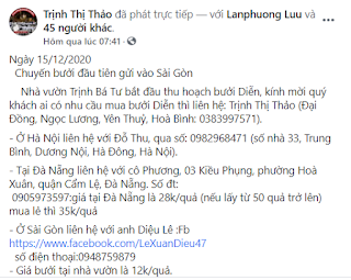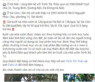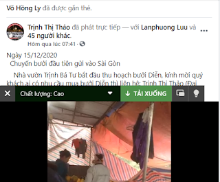 Liên tiếp những ngày sau đó, Đỗ Thu và Võ Hồng Ly liên tục phát đi thông báo thông tin mua bán bưởi “Tù nhân lương tâm” ở các khu vực Hòa Bình, Dương Nội (Hà Nội), Đà Nẵng, và Tp HCM. Mời xem link dưới: