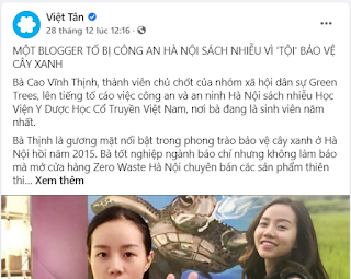 Xuyên suốt nội dung bài viết chỉ là việc “Cao Vĩnh Thịnh, thành viên chủ chốt của nhóm xã hội dân sự Green Trees, lên tiếng tố cáo việc công an và an ninh Hà Nội sách nhiễu Học Viện Y Dược Học Cổ Truyền Việt Nam, nơi bà đang là sinh viên năm nhất” và “tố cáo chuyện công an và an ninh Hà Nội liên tục gây sức ép và dọa nạt chủ nhà nơi bà thuê mặt bằng để mở cửa hàng Zero Waste Hà Nội. Việc này khiến bà phải đóng cửa hàng, dừng việc kinh doanh trong lúc cao điểm mùa Tết”. Tuy nhiên, cả Cao Vĩnh Thịnh và Việt Tân đều không hề cung cấp cho người đọc một hình ảnh hay thứ gì đó dù là nhỏ nhất để làm minh chứng.