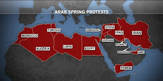 Việc chính quyền Tunisia và Ai Cập bị thay đổi trong thời gian ngắn được ví như con virus độc hại lan rộng tới các nước Trung Đông và Bắc Phi. Các thế lực bên ngoài nhân cơ hội này “đục nước béo cò” để hà hơi, tiếp sức với cái gọi là “dân chủ, tự do và một tương lai tươi mới”. Các cuộc biểu tình và nhiều hình thức như: Bất tuân dân sự, chống đối dân sự, nổi dậy, bạo loạn, vận động trên mạng xã hội, đình công, chiến đấu đô thị lan nhanh sang các nước lân cận như vết dầu loang: Algeria (29-12-2010), Jordan (14-1-2011), Oman (17-1-2011), Saudi Arabia (21-1-2011, các cuộc biểu tình phản đối chính thức bắt đầu diễn ra từ ngày 11-3-2011), Ai Cập (25-1-2011), Syria (26-1-2011), Yemen (27-1-2011), Djibouti (28-1-2011), Palestine (10-2-2011), Iraq (12-2-2011), Bahrain (14-2-2011), Libya (15-2-2011), Kuwait (19-2-2011), Morocco (20-2-2011), Lebanon (27-2-2011)…