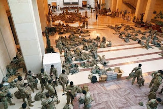 Trong khi đó, mới bắt đầu từ hôm qua, Mỹ đã điều 30 ngàn bộ binh và lính dù đến Washington. Con số này cao gấp đôi số lính Mỹ đóng ở Iraq và Afghanistan cộng lại với nhiệm vụ bảo vệ cái Điện Capitol của giới tinh hoa, và để đảm bảo an toàn cho lễ nhậm chức của Tân Tổng thống Joe Biden khỏi sự phẫn nộ của những người dân mang cờ Mỹ.
