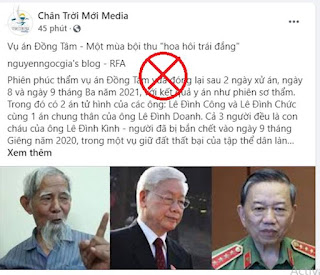 Không nằm ngoài dự đoán, sau phiên toà phúc thẩm vụ án Đồng Tâm, những kẻ chống đối, cơ hội chính trị ngay lập tức tiến hành chiến dịch xuyên tạc bản chất vụ án và hướng lái dư luận theo hướng tiêu cực. Lợi dụng mạng xã hội, các “nhà dân chủ” đẩy mạnh việc tuyên truyền, phát tán, chia sẻ những thông tin, bài viết chứa đựng các nội dung hết sức sai trái, lệch lạc, phi lý, vô căn cứ. Trong đó có thể kể đến các luận điệu đang được tích cực rêu rao như: “Đảng có giết dân không?”, “Trời cao có thấu cho dân Đồng Tâm?”, “Những gì xảy ra ở Đồng Tâm vào đêm 9 tháng 1 năm 2020 rõ ràng là một vụ đàn áp nhân dân một cách rất dã man do chính quyền trung ương trực tiếp chỉ đạo thực hiện bằng lực lượng chuyên nghiệp rất hùng hậu thuộc CAND Hà Nội, có chủ đích và hết sức bạo ngược”, “Nhân dân Đồng Tâm không thể là thủ phạm giết các sỹ quan CAND, mà phải những kẻ khác, theo một kịch bản chặt chẽ nhưng thực hiện vụng về. Sau đó được các cơ quan Tư pháp biện bạch một cách tráo trở, để dồn hết tội lỗi cho người dân Đồng Tâm”…