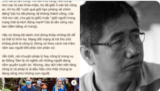 Rõ ràng, lập luận du côn này đã xúc phạm nghiêm trọng danh dự của lực lượng Công an Nhân dân. Phát biểu này của y cho thấy sự ngu dốt của y trên lĩnh vực luật hình sự. Khái niệm „Phòng vệ chính đáng“ và „Tự vệ vượt quá giới hạn phòng vệ chính đáng“ là những phạm trù luật học và là quy định cụ thể ghi trong Điều 22 Bộ luật hình sự 2015 sửa đổi 2017.