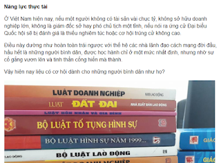 “Ở Việt Nam hiện nay, nếu một người không có tài sản vài chục tỷ, không sở hữu doanh nghiệp lớn, không là giám đốc sở hay phó chủ tịch một tỉnh, nếu nói ra ứng cử Đại biểu Quốc hội sẽ bị đánh giá là thiếu nghiêm túc hoặc cơ hội trúng cử không cao.