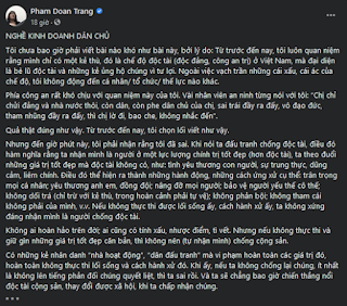 Về hành xử “độc tài”, thì vô vàn dẫn chứng do chính nội bộ họ tố nhau về hành xử phi dân chủ, cổ súy bạo lực, “độc tài” trong chính nhóm nhỏ nhân danh “đấu tranh dân chủ” của mình