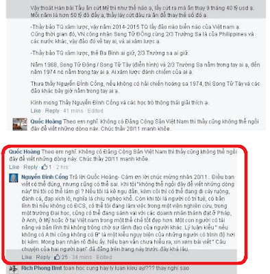 Giải thích luôn, “Người ta” ở đây là các cử tri, nói dân dã là người dân nơi Cống cư trú nhé. “Người ta” mà cống nhắc chính là những người mà Cống coi thường, nhục mạ họ là “Ngu đần, kém cói” như một đoạn hội thoại mà Cống trả lời các học trò của mình trên một diễn đàn mạng mà tôi chụp ở bên trên đây nhé. Tổ sư, coi thường dân như thế mà còn hy vọng dân ủng hộ. Ngáo hả?