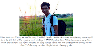 Qua tìm hiểu, được biết Nguyễn Văn Hóa sinh năm 1995 ở huyện Kỳ Anh, tỉnh Hà Tĩnh. Năm 2014, do bất mãn và bị lôi kéo, Hóa bắt đầu lập nhiều tài khoản cá nhân trên mạng xã hội để đăng các bài viết có nội dung chống Nhà nước. Nhờ hoạt động tích cực, Hóa được sự hậu thuẫn của các linh mục bất mãn trên địa bàn tỉnh, cùng thành viên của một số tổ chức chống đối như VOICE và Con đường Việt Nam. Năm 2016, nhân vụ nhà máy thép Formosa xả thải, gây ô nhiễm bờ biển miền Trung, các linh mục bất mãn cùng đảng Việt Tân đã kêu gọi biểu tình, bạo động trên địa bàn tỉnh nhiều lần, và Hóa đã lập fanpage “Giới trẻ giáo hạt Kỳ Anh” để hỗ trợ truyền thông cho phong trào đó. Ngày 02/10/2016, Nguyễn Văn Hóa tham gia cuộc biểu tình, bạo động, tấn công lực lượng bảo vệ, chống bạo động, phá hoại tài sản ở cổng chính Công ty Formosa, đồng thời dùng thiết bị flycam để truyền hình trực tiếp cuộc bạo động trên mạng xã hội, nhằm phục vụ mục đích kích động, tuyên truyền… Nhờ thành tích này, Hóa được một số đài nước ngoài trả 1.500 USD/tháng cho 16 phóng sự; được đảng Việt Tân đưa đi huấn luyện ở nước ngoài; và được kết nạp vào đảng này vào ngày 03/01/2017. Hóa bị bắt để điều tra vào ngày 11/01/2017, và bị kết án 7 năm tù vì tội “Tuyên truyền chống Nhà nước” vào tháng 11 cùng năm. Trong quá trình điều tra, Hóa đã thành khẩn khai báo, giúp làm rõ hành vi của một đảng viên Việt Tân khác là Lê Đình Lượng; tuy nhiên sau đó đã rút lại lời khai.