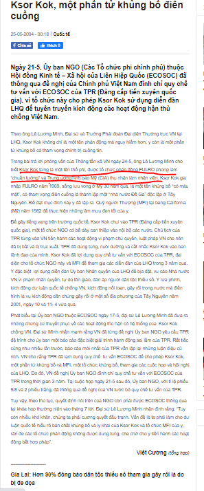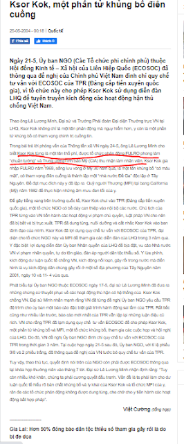 “Các tổ chức ở nước ngoài” vừa nêu chỉ “có mục đích ly khai” trong cái nhìn chủ quan của Chính phủ Việt Nam, hay rốt cuộc chúng thật sự có mục đích ly khai? Nước Mỹ thừa biết rằng đằng sau cuộc bạo động ở Tây Nguyên vào năm 2004, có bàn tay của các tổ chức đòi ly khai đã đăng ký và đang hoạt động ngay trên đất Mỹ. Chẳng hạn, cương lĩnh của Quỹ Người Thượng, do Ksor Kok (sống ở Mỹ) sáng lập vào năm 1992, đã công khai đặt mục đích “Phát động đấu tranh xây dựng một đất nước Đề Ga vào năm 2000”. Và “đất nước Đề Ga” này bao gồm 14 tỉnh của Việt Nam từ Quảng Trị vào đến Bình Thuận, với trung tâm là 4 tỉnh Tây Nguyên. Phàm đã theo dõi về vấn đề nhân quyền Việt Nam mà Bộ Ngoại giao Mỹ lại bỏ qua, làm lơ cho công dân nước mình đang xâm hại, kích động bạo loạn, lật đổ quốc gia khác, túm lấy một nhóm nhỏ dân tộc Tây Nguyên bị công dân Mỹ lôi kéo và bị đi tù tiếp tay cho công dân Mỹ gây bạo loạn làm cái cớ lên án nhân quyền Việt Nam !?!