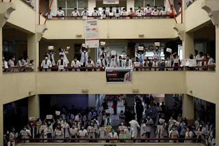 Các bác sĩ ở Nepal tập trung phản đối tình trạng bạo lực nhắm vào nhân viên y tế. Ảnh: Reuters.