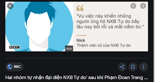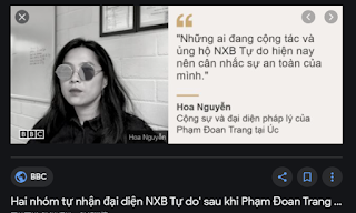 Trước tiên, phải thừa nhận rằng sau khi Trang bị bắt, NXB Tự Do của cô đã như “rắn dập cả đầu”, “tan nát như ong vỡ tổ”. Tệ hơn, hồi tháng 5 năm nay, đã có đến 2 nhóm tự xưng là NXB Tự Do đánh nhau chí chóe trên Internet. Nhóm thứ nhất gồm một số người ẩn danh đang quảng bá sách của Đoan Trang, còn nhóm thứ hai gồm Will Nguyễn (sống ở Mỹ) và Hoa Nguyễn (sống ở Úc, là đại diện pháp lý của Trang). Khi nhóm thứ nhất tuyên bố rằng công an đã bắt một cộng tác viên của NXB Tự Do là Nguyễn Bảo Tiên, thì nhóm thứ hai nói rằng Nguyễn Bảo Tiên không tham gia NXB Tự Do, và nhóm thứ nhất là giả mạo. Dù thế nào đi nữa, cả 2 nhóm đều không còn tiến hành in sách của Đoan Trang, và các hoạt động của NXB Tự Do coi như đã chết lâm sàng. Tên tuổi của Đoan Trang cũng chẳng giúp gì cho các hoạt động liên quan đến cuộc bầu cử Quốc hội khóa XV và phiên xử “tổ Đồng Thuận”, dù đây là hai chủ đề Trang dành nhiều tâm huyết nhất, chỉ sau việc viết sách.