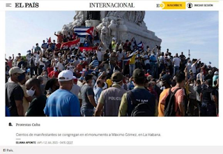 4. Báo El País (Đất nước) của chính quyền Tây Ban Nha cũng làm trò hề tương tự: lấy hình ảnh quần chúng cách mạng tập trung tại Tượng đài Máximo Gómez tại Thủ đô La Habana cách đây nhiều năm làm bằng chứng cho biểu tình lớn chống chính quyền ở Cuba! Chúng quá cẩu thả, quên không xóa nốt hình ảnh phù hiệu 26-7 (26 Julio), biểu trưng của Phong trào 26-7 do Fidel Castro lãnh đạo như đội chính trị tiên phong của cách mạng Cuba từ năm 1953.