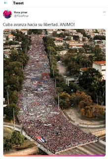 3. Báo La Nación (Quốc gia) của chính quyền thân Mỹ ở Áchentina cũng khá vội vàng giật tít lớn: “Phản kháng độc đáo của đông đảo người khiến chính quyền Cuba bất ngờ” và, vụng về thay, báo này đã sử dụng luôn hình ảnh quần chúng tuần hành bảo vệ cách mạng để biến thành bằng chứng về sự “phản kháng độc đáo của đông đảo người”!