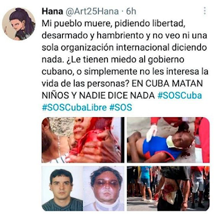 2. Chiều ngày 11 và ngày 12 tháng 7, Chính phủ Cuba tổ chức họp báo, phát biểu công khai với nhân dân cả nước và cộng đồng quốc tế về nguyên nhân, diễn biến của sự kiện và các giải pháp trước mắt của chính quyền. Một số phần tử quá khích đã bị bắt và chỉ có duy nhất một phụ nữ tử vong. Vậy mà, chương trình Mucho Gusto của kênh Mega thuộc truyền hình của chế độ cực hữu Chile sử dụng hình ảnh đổ máu tại cuộc biểu tình đòi ly khai ở xứ Cataluna (Tây Ban Nha) cách đây hơn 1 thập kỷ để mô tả cảnh “đàn áp đẫm máu” ở La Habana! Chúng quá vụng về, những người trong ảnh mặc đồ rét, còn ở Cuba xứ nhiệt đới quanh năm có bao giờ phải dùng trang phục mùa đông như vậy đâu!