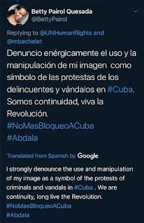 9. Sự thật đã lên tiếng: bằng hai thứ tiếng Tây Ban Nha và tiếng Anh, một cư dân mạng gay gắt phản đối các trang mạng xã hội đã sử dụng thông tin của cô, chế tác thành tin và ảnh phục vụ ý đồ xấu xa chống phá Cuba. Cô đã hô vang khẩu hiệu: Cách mạng muôn năm !