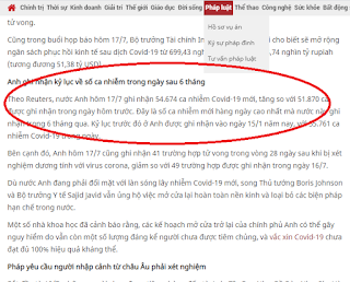 Sáng nay 18/7, tờ VietnamNet dẫn lời Reuters: “Indonesia trong hôm 17/7 đã ghi nhận 51.952 ca nhiễm và 1.092 ca tử vong mới bởi Covid-19. Dữ liệu theo dõi của Reuters trong 7 ngày vừa qua cho thấy, quốc gia Đông Nam Á này đang ghi nhận nhiều ca nhiễm Covid-19 hơn bất kỳ quốc gia nào khác trên thế giới, và chỉ đứng sau Brazil về số ca tử vong” và “Anh ghi nhận kỷ lục về số ca nhiễm trong ngày sau 6 tháng”. Theo đó, “nước Anh hôm 17/7 ghi nhận 54.674 ca nhiễm Covid-19 mới, tăng so với 51.870 ca được ghi nhận trong ngày hôm trước. Đây là số ca nhiễm mới hàng ngày cao nhất mà nước này ghi nhận trong 6 tháng qua. Kỷ lục trước đó ở Anh được ghi nhận vào ngày 15/1 năm nay, với 55.761 ca nhiễm Covid-19 trong ngày”.