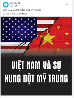 Ông “tổng bí thư” Việt tân Lý Thái Hùng vừa đăng bài dài “VIỆT NAM VÀ SỰ XUNG ĐỘT MỸ TRUNG” phân tích quan hệ tay ba Việt-Mỹ-Trung, phân tích tác động chính sách thương mại, ngoại giao, quốc phòng của Mỹ và Trung Quốc đối với Việt Nam, phân tích lợi hại trong việc Việt Nam chọn Mỹ hay Trung để “nghiêng” về nước nào, rồi đưa ra đánh giá “quen thuộc”: “Theo Mỹ mất đảng, theo Tàu mất nước”, đòi Việt Nam phải từ bỏ chính sách “đu dây” ngoại giao, phải từ bỏ chính sách quốc phòng 3 không để theo Mỹ, phải kiện Trung Quốc ra tòa, phải ép chính phủ Việt Nam “chấm dứt thái độ thù địch với dân, đặc biệt là đối với những yêu nước đang bị chế độ trù dập trong lao tù, có như vậy mới kêu gọi được sự đóng góp của mọi người để xây dựng thế đoàn kết dân tộc hầu chống ngoại xâm và phục hưng đất nước”!