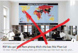 VOA Tiếng Việt vừa đăng tài bài viết với nội dung “Tổ chức Phóng viên Không Biên giới (RSF) kêu gọi Việt Nam lập tức phóng thích nhà báo Mai Phan Lợi, nguyên phó tổng thư ký tòa soạn, trưởng văn phòng đại diện của báo Pháp luật TPHCM tại Hà Nội, người bị bắt tạm giam hôm 2/7 để điều tra về ‘tội trốn thuế.’”.