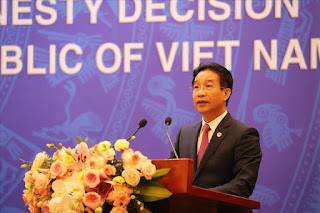 Tại buổi họp báo, Phó Chủ nhiệm Văn phòng Chủ tịch nước Phạm Thanh Hà công bố quyết định đặc xá của Chủ tịch nước Nguyễn Xuân Phúc.