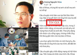 Hoàng Nguyên Vũ phát tán tin giả “bác sỹ Khoa rút ống thởi của mẹ để cứu thai phụ”.