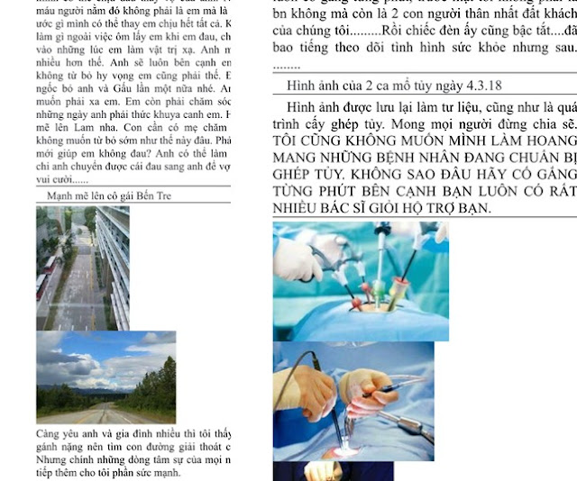 Thậm chí, cả câu chuyện chính bản thân Lam bị ung thư máu từ nhỏ, câu chuyện về người anh trai bị bệnh mất từ lúc mới sinh ra, ước mơ làm bác sĩ và được ba hiến tuỷ để cứu sống mình và sau đó Lam sang Singapore theo đuổi giấc mơ bác sĩ như thế nào… đều được Lam tổng hợp cả mấy trang như một tấm gương vượt lên số phận gửi cho tất cả những người mà cô ta quen được.
