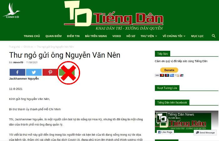 TP.HCM gần như đang trở thành tâm điểm chống dịch của cả nước. Không đứng ngoài cuộc, mới đây, trang Tiếng dân, Dân làm báo đăng tải bài viết “Thư ngỏ gửi ông Nguyễn Văn Nên” của một người đàn ông Việt kiều có tên Jackhammer Nguyễn.