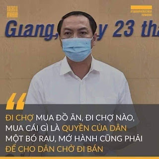 Cách đây không lâu, khi Chính phủ yêu cầu giãn cách xã hội theo tinh thần “ai ở đâu ở yên đó” thì thật lạ lùng, lãnh đạo tỉnh này lại đăng đàn phát biểu rất cải lương, rằng “Đi chợ mua đồ ăn, đi chợ nào, mua cái gì là quyền của dân. Một mớ bó rau, mớ hành cũng phải để dân đi chợ bán”.