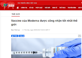 Thứ ba, Việt Nam đã phê duyệt và cho phép sử dụng 8 loại Vaccine để mau chóng đạt được mục tiêu miễn dịch cộng đồng. Với bất kỳ loại Vaccine mới nào, VTV cũng đều có chương trình phân tích khoa học về loại Vaccine đó, bất kể nó đến từ Mỹ, Anh hay Trung Quốc. Mời xem ảnh chụp màn hình ngay dưới đây để thấy VTV đã “quảng cáo” rồi “đính hướng” cho Vaccine của Mỹ, Anh như thế nào: