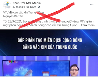 Hôm 27/9, tay cha căng chú kiết nào đó có tên Nguyễn Bá Tân viết bài “VTV đề cao Vaccine Trung Quốc” và được trang phản động Chân Trời Mới Media của giới chống cộng ở hải ngoại đăng tải lại. Bài viết cáo buộc rằng nhà nước Việt Nam tìm cách quảng cáo cho Vaccine Trung Quốc, rằng VTV đã vi phạm luật cạnh tranh khi “đánh bóng” cho Vaccine Trung Quốc và rằng, làm như thế là “thiếu công bằng đối với các loại Vaccine khác”. bài viết cũng quy chụp Đài truyền hình quốc gia đang “chọn thay” Vaccine cho người dân.