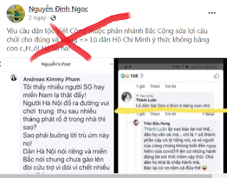 Thậm chí, Ngọc công khai phân biệt vùng miền, chửi rủa người miền Bắc rằng: “Yêu cầu dân tộc Việt Cộng thuộc phân nhánh Bắc Cộng sửa lợi câu chửi cho đúng và trúng => Lũ dân Hồ Chí Minh ý thức không bằng con c.,H.,ó! Há há há!” và “Vậy thằng nào biểu “chống dịch như chống giặc”? Vậy thằng nào nói “không thắng không về”?