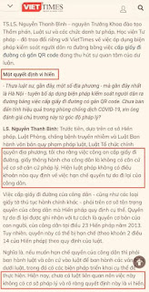 Đọc một bài trên Viettimes, thấy có anh Nguyễn Thanh Bình phán như đúng rồi rằng, việc cấp giấy đi đường của công an Thành phố Hà Nội trong thời gian thực hiện giãn cách xã hội là vi hiến. Tôi phì cười, bởi câu nói ấy được Viettimes ghi nhận từ một người là luật sư, lại có học vị Tiến sĩ, đã từng là Trưởng khoa Đào tạo Thẩm phán, Luật sư và các chức danh Tư pháp của Học viện Tư pháp.