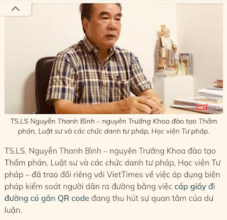 Tôi cho rằng ý kiến của anh TS,LS Nguyễn Thanh Bình “công an cấp giấy đi đường gắn QR code thiếu căn cứ pháp lý” là không đúng và rất nguy hiểm trong điều kiện đại dịch như hiện nay.