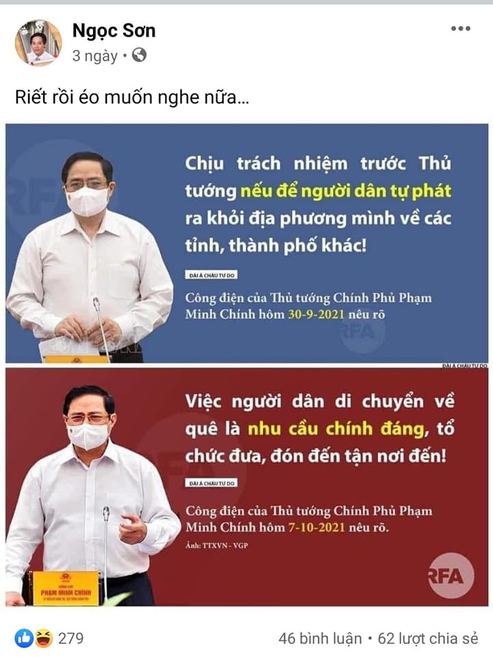 Thậm chí, ông này còn cả gan xuyên tạc, công kích những phát biểu của Thủ tướng Chính phủ Phạm Minh Chính và cả Tổng Bí thư Nguyễn Phú Trọng.