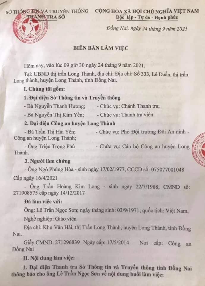 Lê Trần Ngọc Sơn cũng đã từng bị Sở Thông tin & Truyền Thông tỉnh Đồng Nai và Công an huyện Long Thành mời lên làm việc và đã có biên bản xử phạt hành chính bởi những thông tin sai sự thật về công tác phòng chống dịch Covid-19.